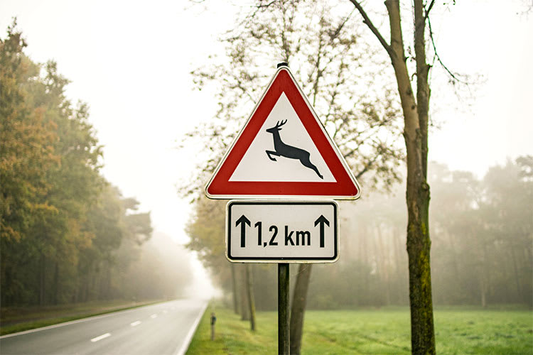 Reduzieren Sie die Geschwindigkeit auf Landstraßen und in der Dämmerung, besonders in Waldgebieten.