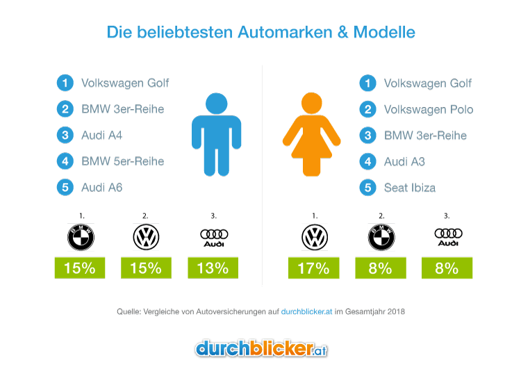 durchblicker.at-Analyse: Österreichs Männer fahren BMW, Frauen stehen auf VW