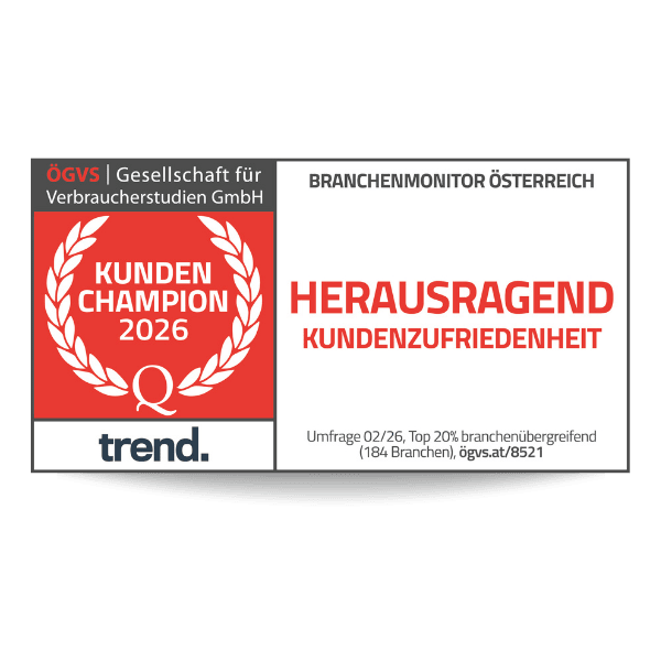 Das oberste Ziel von durchblicker ist es nicht nur, unseren Kund:innen beim Fixkosten Sparen zu helfen, sondern auch dafür zu sorgen, dass der Wechsel bzw. Produktabschluss so stressfrei wie möglich abläuft. Tausende zufriedene Kund:innen bestätigen das. Zu diesem Schluss ist auch die österreichische Gesellschaft für Verbraucherstudien gekommen. Sie hat im Rahmen ihres „Branchenmonitors Kundenzufriedenheit 2026“ durchblicker erneut zum Kunden-Champion gekrönt.