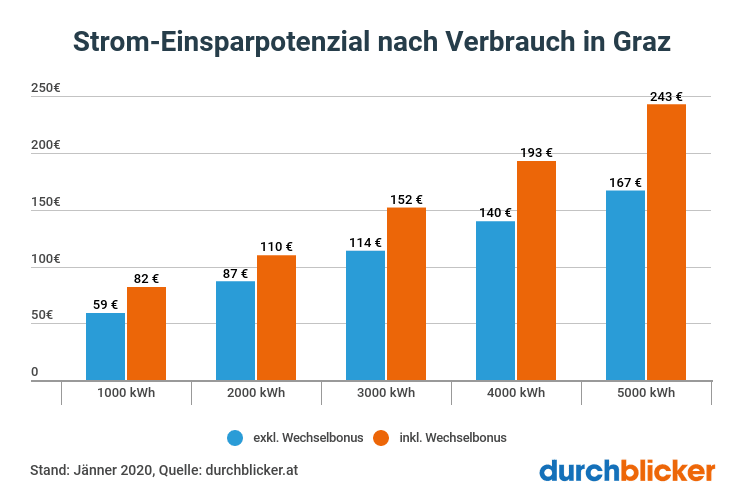 Strom-Einsparpotenzial nach Stromverbrauch in Graz