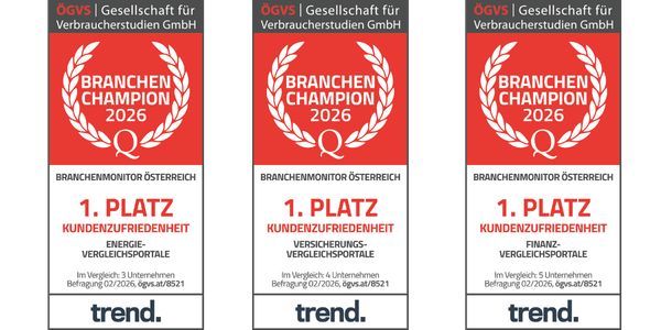 durchblicker als Kundenchampion 2026: auch dieses Jahr wurde durchblicker von der österreichischen Gesellschaft für Verbraucherstudien (ÖGVS) wieder im Rahmen des Branchenmonitors für Kundenzufriedenheit für herausragende Kundenzufriedenheit mit dem Kundenchampion ausgezeichnet.